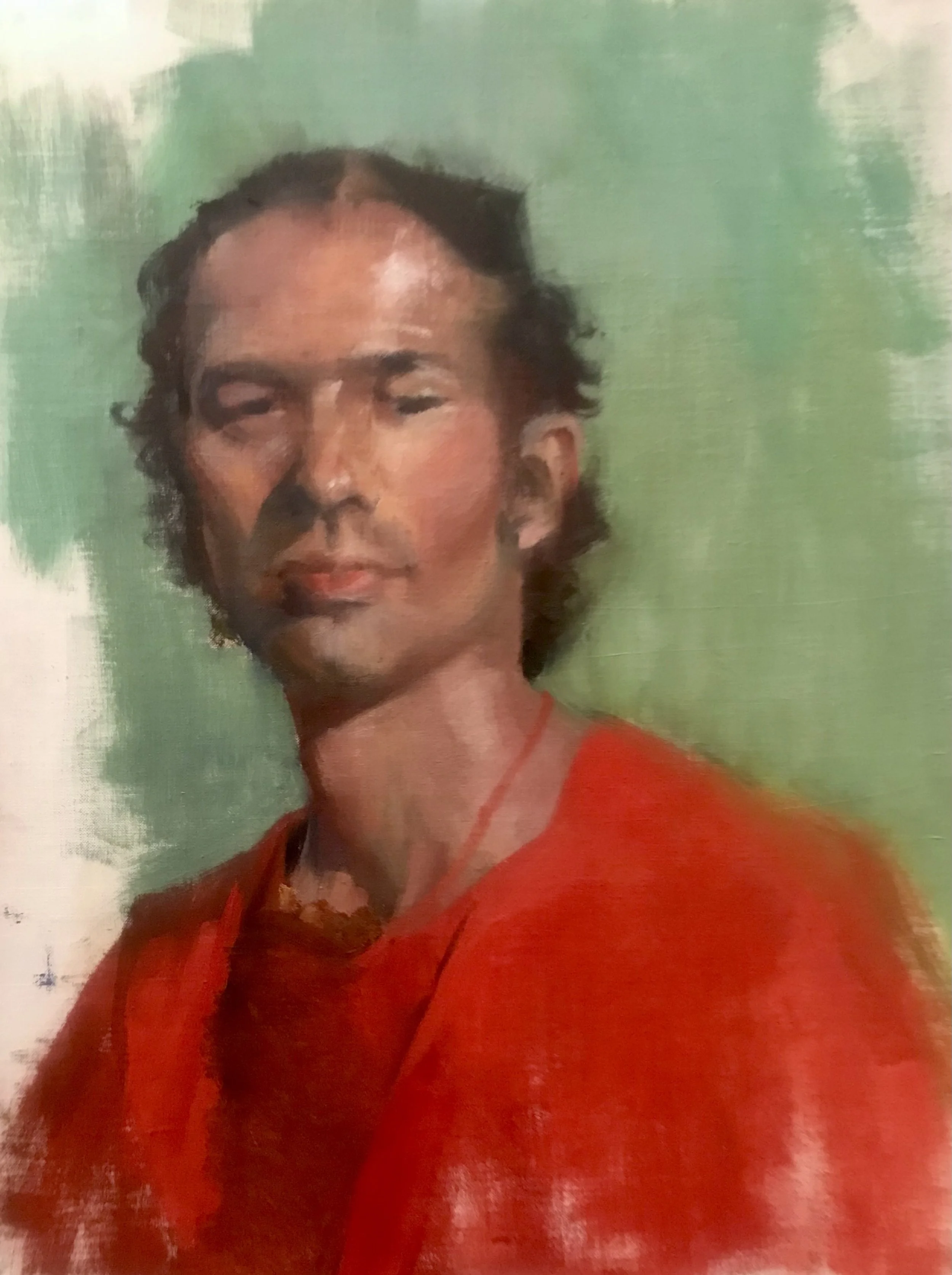 Many new challenges for me. This is the largest format I have painted yet. I am grateful to the amazing José sitting solid for this pose.
